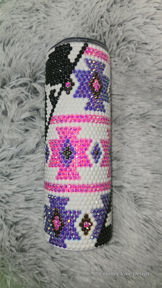 Aztec cow print 20 oz rhinestone